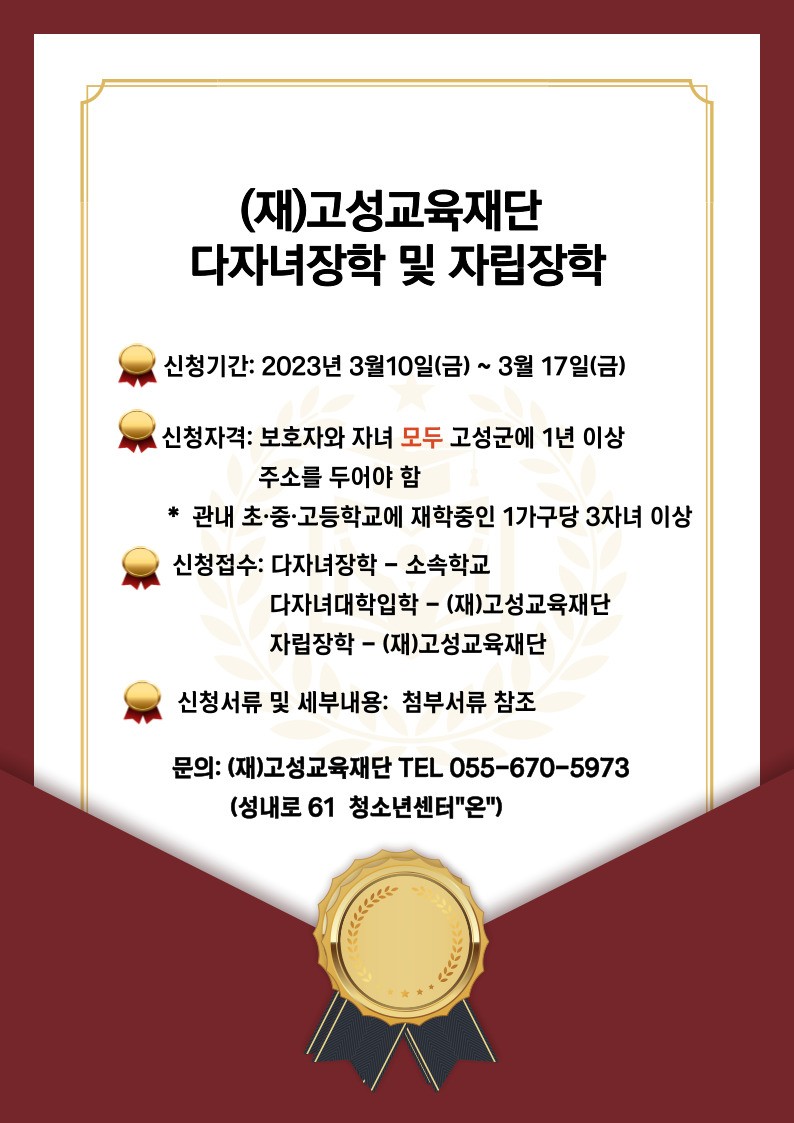 2023년 고성교육재단 장학금 지원계획 및 제출서식